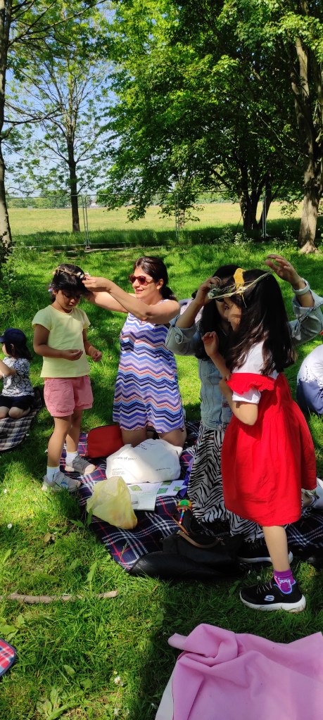 We are back! We had a fantastic first event today with Trees and Leaves at Headstone Mannor Park. The sun was out and the participants were eager to be out in nature.We learned to identify some trees, discovered the thousands of animals that live in them, made crowns and wands from Willow, bracelets and puppets from Elder and leaf prints with clay. Our thanks to Roshan who volunteered today and to Thames 21, the Community and Heritage Lottery Funds, Friends of Headstone Manor Park and the Mayor of London for sponsoring it.